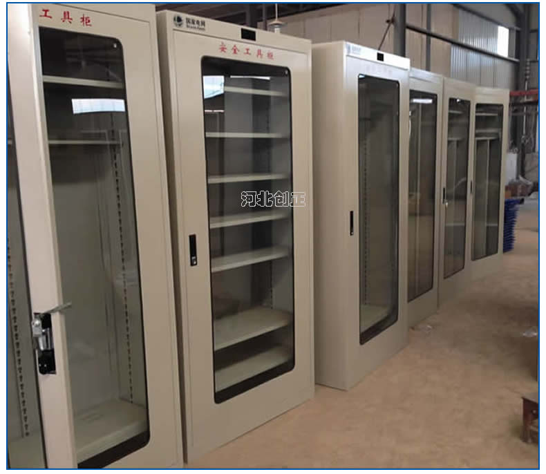 1、柜體是冷軋鋼板卷壓成型,厚度有1.0mm,1.2mm,1.5mm供挑選。柜體外表接納靜電防腐噴塑工藝,色彩為駝灰色,柜門裝有通體通明鋼化玻璃,透過玻璃能夠看到分類有序的工用具。